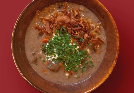 z dynią, czarnym czosnkiem, cebulą, chilli, czarną soczewicą i pastą miso - wegańskie