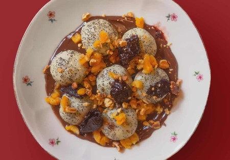 Okrągłe, puszyste knedle wypełnione po brzegi śliwkami i czekoladą. Podajemy je obtoczone w chrupiącym, złocistym panko 400g
